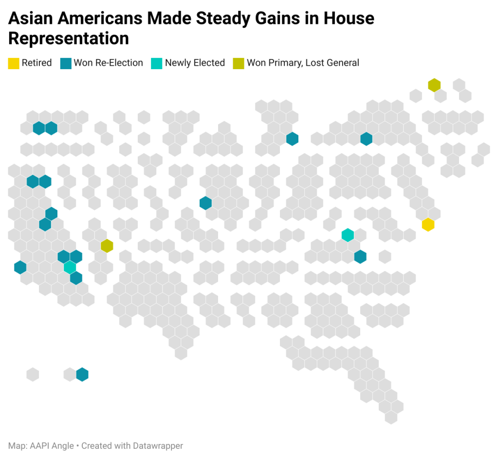– Asian Americans continued their trend of increased political engagement and representation in Congress. Notable candidates included: