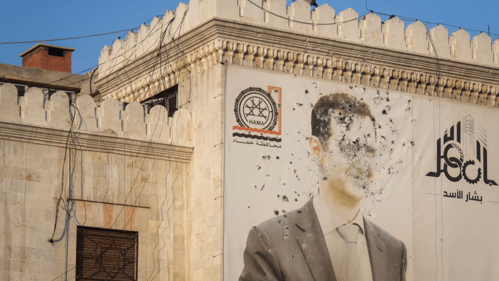 A bullet-ridden mural of deposed dictator Bashar al-Assad, who was forcibly removed from power in December 2024. Gabbard has secretly met with Assad in the past, an action that led to controversy during her nomination. Source: AP Photo by Omar Albam