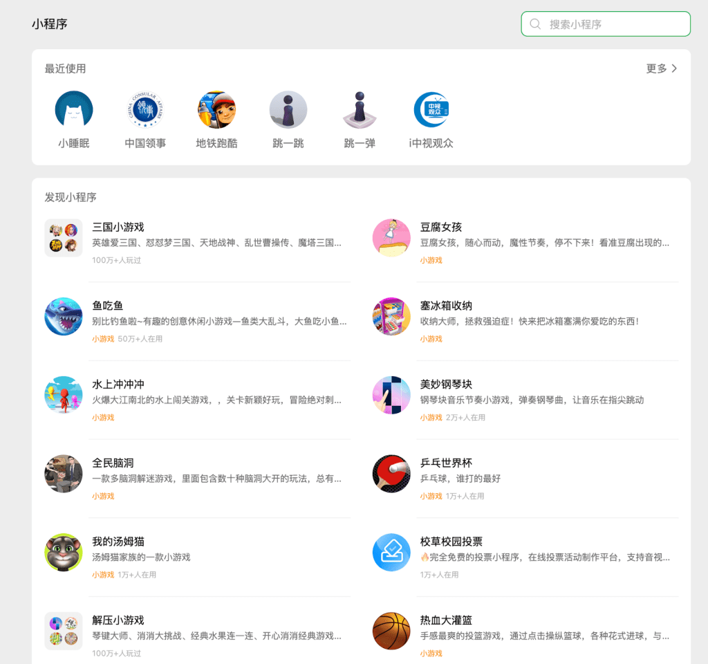 Mini-programs are a feature built into the search browser, but they are so helpful that there’s a dedicated button for opening and discovering the plethora of content available here!