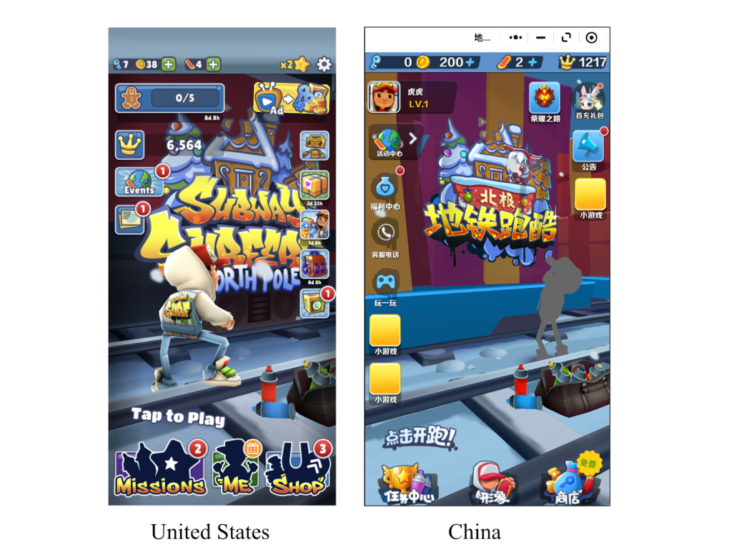 地铁跑酷 (Subway Surfers): Over the years, once-inaccessible Western games have found themselves entering the phones of Chinese gamers, and the popular Subway Surfers is no exception. However, the interface is much more complex, reflecting the deeper monetization and progression mechanics that have become established in China.